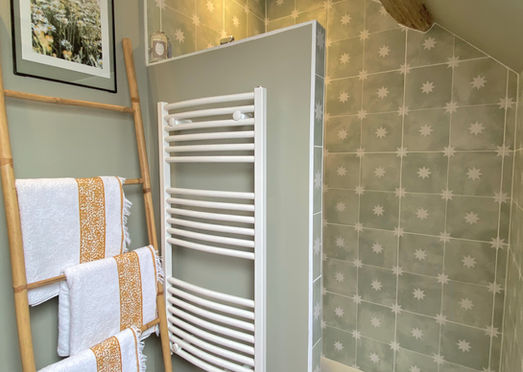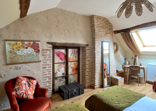 Cette suite de 36 m²au 1er étage, organisée autour d'un palier privé propose 2 chambres et 1 salle d’eau privative avec toilettes. La salle d’eau est indépendante des chambres. Cette suite n'est occupée en totalité que par des personnes qui se connaissent, amis ou famille, la salle d’eau étant commune. Si l’une des 2 chambres est louée seule, l’autre ne le sera pas.