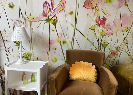 Le thème choisi pour ces chambres est résolument bucolique, des champs de fleurs en tête de lit et des tons rose doux, vert sauge ou jaune pastel. La chambre Francesca conserve des éléments typiques comme la charpente apparente, la brique et des murs chaulés.